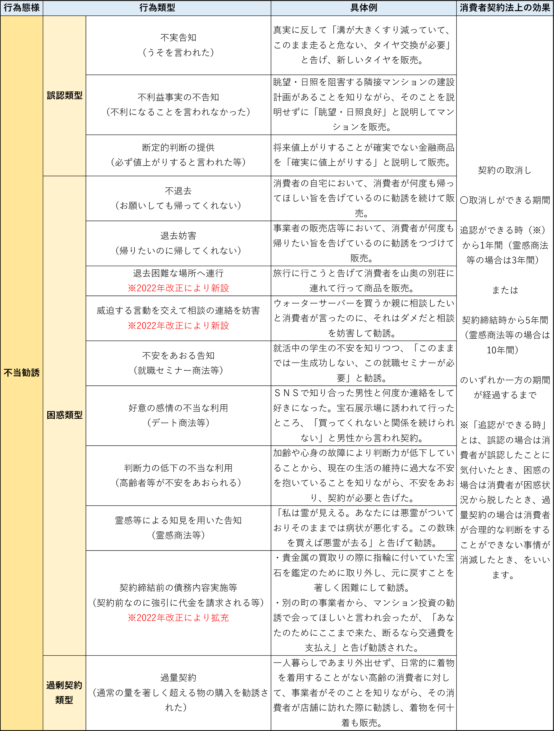 以下では、消費者契約法の2022年改正部分を「2022年改正」といいます。