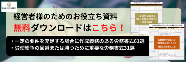 「【経営者必見】法令上作成義務のある労務書式12選」では、企業が人を雇用するうえで必要になる労働・雇用関連書面を紹介いたしました。上記記事をご覧になっていない経営者様はこちらもご確認ください。