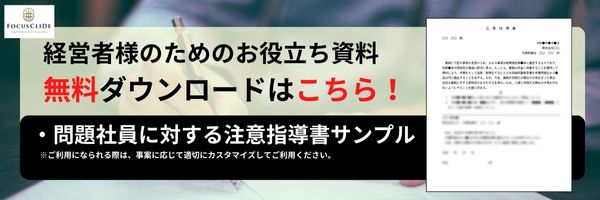 注意・指導の方法としては、①口頭による方法と、②注意書・指導書といった書面で行う方法が考えられますが、注意書・指導書といった形で書面を作成して注意・指導をしている会社はあまり多くないのではないでしょうか?